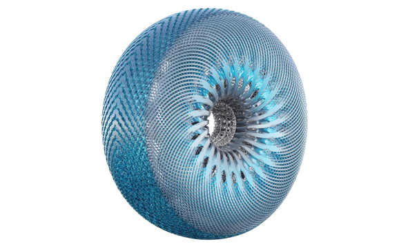 Sustainable Concept Tire, ban konsep berteknologi cetak 3D mutakhir yang dibuat dari material terbarukan dan daur ulang. Desain organiknya dikembangkan bersama Harvestance menggunakan perangkat lunak NTop, mencerminkan komitmen ESG Hankook pada keberlanjutan.
